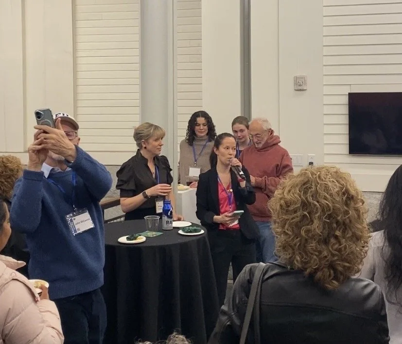 Co-founders Whitney Scharer and Sonya Larson giving a TBR update at cocktail hour.